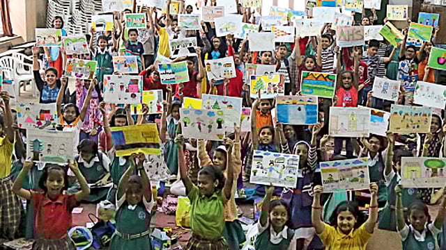 सकाळी नऊ वाजता पाचवी ते दहावीच्या मोठ्या गटातील विद्यार्थ्यांसाठी शहराच्या विविध भागांतील केंद्रांवर स्पर्धा सुरू झाली. शाळेत नावनोंदणी करण्यास विसरलेल्या विद्यार्थ्यांनाही स्पर्धेत सहभाग घेऊ दिल्याने त्यांच्यासह पालकांच्या चेहऱ्यावरही आनंद दिसत होता. आपापल्या स्कूलबॅगमधील कंपास पेटी, पेन्सिल, रंगांच्या बाटल्या, रंगकांड्यांपासून विविधरंगी पेन केव्हाच बाहेर पडले. कधी पट्टीच्या साहाय्याने, तर कधी नाजूक बोटे हळुवार फिरवीत कोऱ्या कागदावर रेषा उमटू लागल्या. उंच उंच डोंगर, त्यातून डोकावणारा सूर्य, नदीचे झुळूझुळू वाहणारे पाणी, त्याभोवती हिरवागार निसर्ग, या निसर्गाच्या सान्निध्यात मनसोक्तपणे विहार करणारे प्राणी अन् पक्षी... अशा स्वरूपात निसर्गाचे विविधरंगी रूप चित्रांमधून उलगडत गेले. तर कुठे दारूमुळे उद्ध्वस्त होणारे आयुष्य, बदलत्या जीवनशैलीमुळे कमकुवत झालेल्या हृदयापासून ते सिमेंटच्या जंगलापर्यंतचे वास्तव विद्यार्थ्यांनी चित्रांद्वारे मांडले. सर्वसामान्य मुलांसह दिव्यांग व विशेष मुला-मुलींनीही स्पर्धेत सहभाग घेत आकर्षक चित्रे रेखाटली.
