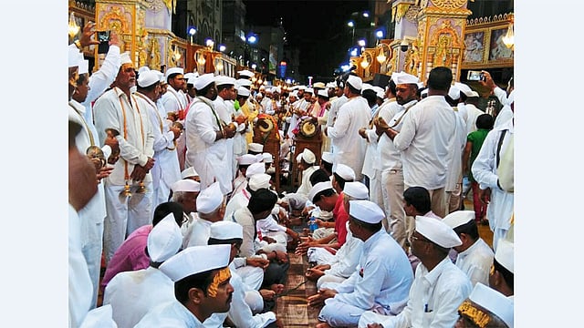 गणरायाच्या चरणी भजनातून वारकऱ्यांची सेवा