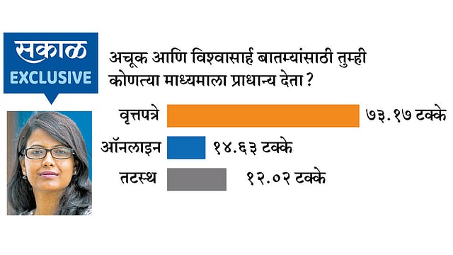 पुणे - आपत्तीच्या प्रसंगी पुणेकरांचा वृत्तपत्रांवर सर्वाधिक विश्वास असल्याचे एका सर्वेक्षणातून सिद्ध झाले आहे. त्याचबरोबर वृत्तपत्रांनी अधिक विश्लेषणात्मक मजकूर देण्याची अपेक्षाही वाचकांनी व्यक्त केली आहे. टिळक महाराष्ट्र विद्यापीठाच्या पत्रकारिता विभागाच्या माजी प्राध्यापक आणि सध्या सिंबायोसिस आंतरराष्ट्रीय अभिमत विद्यापीठाच्या पीएच.डी. संशोधक दिपान्निता दास यांनी हे सर्वेक्षण केले आहे. सप्टेंबर २०१९च्या २६ तारखेला पुणे शहरात तब्बल १०६ मिलिमीटर पावसाची नोंद झाली.
