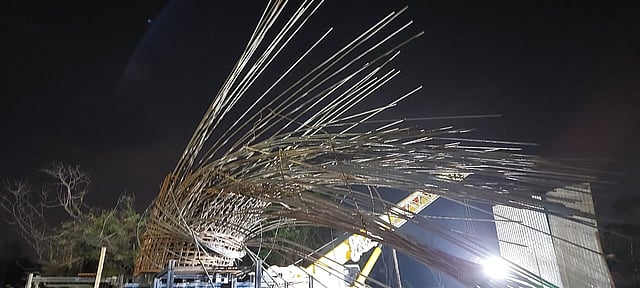 उड्डाणपुलाकरता एकूण वीस पिलर उभे करण्याचे काम सुरू असून त्यापैकी जवळजवळ सर्व पीलरचे काम सिमेंट काँक्रेट टाकून पूर्ण झाले आहे. त्यापैकी पिलर क्रमांक तेराचे आज काम सुरू होते. त्याच्यासाठी लोखंडी सांगाडा उभा करताना त्याचा तोल जाऊन तो कोसळला.