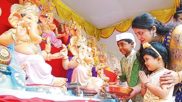 शारदा ज्ञानपीठमचे संस्थापक पंडित वसंतराव गाडगीळ म्हणाले, ‘‘सोमवारी सकाळी ६ वाजून २४ मिनिटांनी सूर्योदय होत आहे. त्यापूर्वी स्नान करून, देवपूजा व आईवडिलांना नमस्कार करावा. त्यानंतर सकाळी साडेनऊपर्यंतचा पहिला प्रहर गणपती प्रतिष्ठापना करण्यासाठी अतिशय उत्तम मुहूर्त आहे. दुसऱ्या प्रहरात साडेनऊ ते दुपारी साडेबारा हा उत्तम मुहूर्त आहे. दुपारी साडेबाराच्याआत प्रतिष्ठापना करून गणपतीला नैवेद्य दाखविणे गरजेचे आहे. साडेबारानंतर प्रतिष्ठापना केले जाणारे गणपती हे धर्मशास्त्रानुसार नाहीत, तर ‘सवड’शास्त्रानुसार बसविले जात आहेत.