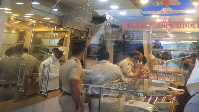 त्यावेळी निकम यांनी चोर चोर, अशी ओरड केली. त्यावर परिसरातील नागरीक जमा होऊ लागले. त्यामुळे दरोडेखोरांमधील पोलिस वेशातील व्यक्तींनी गावठी कट्ट्यामधून ज्वेलर्स दुकान, शेजारील कपड्याचे दुकान व खालील मजल्यावरील मेडीकल स्टोअर्स या दुकानावर गोळीबार केला. एकूण सहा फैरी झाडल्याचे तेथील प्रत्यक्षदरर्शिंनी सांगितले. गोळीबार करतच त्यांनी स्विफ्ट कारमधून (क्रमांक एमएच 12 एफ के 2041) पोबारा केला. सुदैवाने या गोळीबारात कोणीही जखमी झाले नाही.