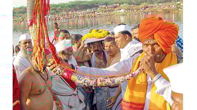 नीरा नरसिंहपूर - जगतगुरू संतश्रेष्ठ तुकाराम महाराजांच्या पादुकांना नीरेच्या पाण्याने स्नान घालण्यात आले. पुणे जिल्ह्यातील सराटीचा शेवटचा मुक्काम संपल्यानंतर पालखी सोलापूर जिल्ह्यातील अकलूजला लाखो वैष्णवांच्या साक्षीने मार्गस्थ झाली. पुणे जिल्ह्याच्या वतीने प्रशासनाने पालखी सोहळ्यास निरोप दिला.