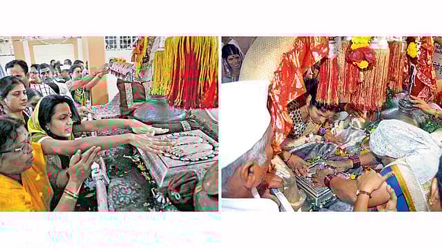 पालखी विठ्ठल मंदिर (भवानी पेठ) येथे आणि निवडुंगा विठोबा देवस्थान (नाना पेठ) येथील मंदिरांत विठ्ठल-रुक्मिणीच्या मूर्तींची पहाटे विधिवत षोड्शोपचारे पूजा झाली. काकड आरती झाल्यावर संत ज्ञानेश्वर आणि संत तुकाराम महाराजांच्या पादुकांवर अभिषेक झाला. दोन्ही मंदिरांत आलेल्या भाविकांनी संतांच्या पादुकांचे दर्शन घेतले. महिला व पुरुषांना दर्शन घेता यावे, याकरिता दोन्ही मंदिरांच्या बाहेर व्यवस्था उभारण्यात आली होती. बाहेर मंडप उभारल्याने पावसामुळे भाविकांची गैरसोय झाली नाही. सेवाभावी संस्थांचे स्वयंसेवक, विद्यार्थीदेखील येणाऱ्या भाविकांना सहकार्य करीत होते.