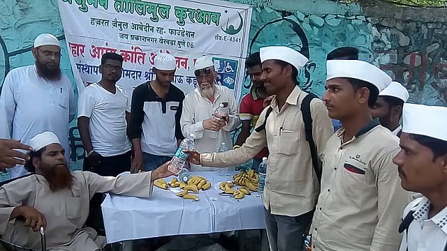 येथील अंजुमन तालीमुल कुरआनचे अध्यक्ष अली खान व प्रहार अपंग क्रांती आंदोलनचे रफीक खान यांच्या नेतृत्वाखाली मुख्तार शेक, गफ्फार शेख, रशीद शेख, साहिल खान, आफताब खान, राहुल कानडे, महेश मंडलीक आदी उपस्थित होते. यावेळी वारकऱ्यांना केळी, पाण्याचे वाटप करण्यात आले. याविषयी रफिक खान म्हणाले, कोणताही धर्म हा अंतिम मानव सेवेचा संदेश देतो, आम्ही दरवर्षी असा उपक्रम राबवतो, यावेळी उपवास करून अन्नदान केल्याने जास्त आनंद मिळाला हिच आपली संस्कृती आहे.