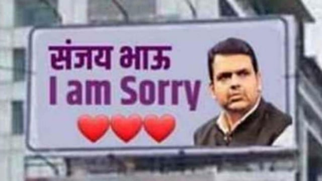 पिंपरी - राज्यात भाजप-शिवसेना महायुतीला जनतेने स्पष्ट बहूमत देवूनही अडीच-अडीच वर्षे मुख्यमंत्री पदावरुन शिवसेना आडून बसली आहे. त्यांची बाजू खासदार संजय राऊत लढवत असल्याने त्यांचीच चर्चा सगळीकडे असताना, पिंपळे सौदागर येथील शिवार चौकात ‘संजय भाऊ I AM SORRY’ चा फलक झळकला असल्याच्या बातम्या काही स्थानिक न्यूज पोर्टलवर झळकल्या असल्यातरी हा फोटो एडिट केला असल्याचे स्पष्ट झाले आहे. त्यावर मुख्यमंत्री देवेंद्र फडणवीस यांचे छायाचित्र आहे. हा फोटो सोशल मीेडियावर प्रचंड व्हायरल झाला. त्यानंतर या फलकाची राजकीय वर्तुळात जोरदार चर्चा सुरु झाली आहे.
