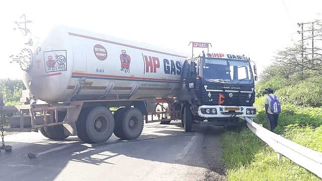 ऊर्से खिंडीतून द्रुतगती महामार्गाकडे जाताना उतारावर गॅस टँकरच्या चालकाने अचानकपणे ब्रेक दाबल्याने पुर्ण टँकर जागीच फिरला अन् बाजुच्या लोखंडी संरक्षक कठडे यावर जाऊन धडक दिली. यामुळे पंधरा मिनिटे वाहतूक जाम झाली होती. जवळ असणाऱ्या वाहतूक पोलिस व कर्मचारी यांनी टँकर बाजुला काढुन वाहतूक सुरळीतपणे सुरू केली.
