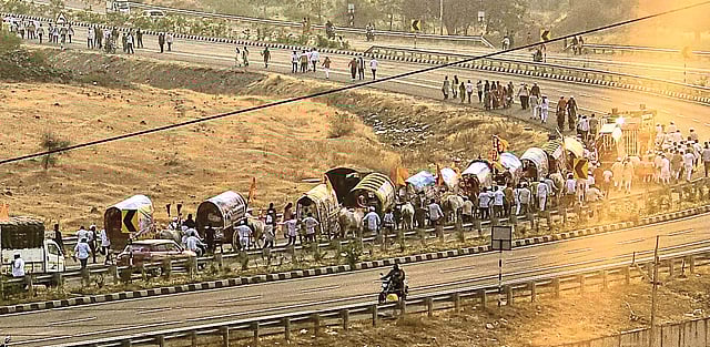 जेजुरी : श्री जानाईदेवी पायी पदयात्रा पारंपरिक बैलगाड्यांच्या जथ्थ्यासह निवकणेकडे रवाना झाली.