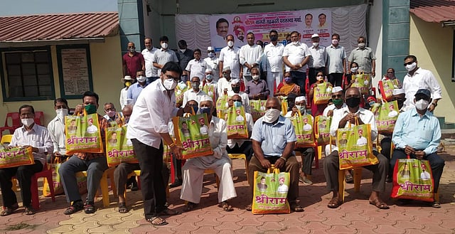 श्रीराम पतसंस्थेच्या रघुकुल मंगल कार्यालयात आज दुपारी झालेल्या कार्यक्रमात आमदार बेनके यांच्या हस्ते किराणा वाटपाचा प्रारंभ करण्यात आला. कार्यक्रमाच्या अध्यक्षस्थानी पतसंस्थेचे अध्यक्ष तानाजी डेरे होते.