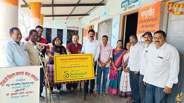 परिंचे,ता. २४ : स्नेहांकूर द रे ऑफ होप, पुणे व रिम्यूनन्स सर्व्हिसेस प्रा. लि., पुणे यांच्या संयुक्त विद्यमाने माहूर (ता.पुरंदर) येथील माध्यमिक विद्यालय सौरऊर्जा प्रकल्पाचे लोकार्पण झाले. पर्यावरणपूरक ऊर्जा वापर आणि ऊर्जा स्वावलंबनाचा संदेश देणारा हा उपक्रम विद्यालयासाठी तसेच परिसरासाठी एक महत्त्वपूर्ण टप्पा ठरला आहे. या प्रकल्पामुळे विद्यालयाच्या वीज गरजा मोठ्या प्रमाणात भागविण्यात येणार असून पर्यावरण संरक्षणाच्या दिशेने ठोस पाऊल उचलण्यात आले आहे.