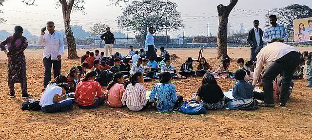 सोमेश्वरनगर, ता. १८ : येथील केंद्रावर सकाळ बालकुमार चित्रकला स्पर्धेत विविध शाळांचे विद्यार्थी सहभागी झाले होते. सोमेश्वर विद्यालयाच्या बगीच्यामध्ये मुलांनी आपल्या मनातली भावविश्व कागदावर रेखाटले