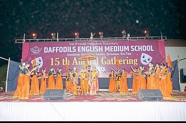 वालचंदनगर, ता. ३० : आनंदनगर (ता. इंदापूर) येथील डॅफोडिल्स इंग्लिश मीडियम स्कूलमधील विद्यार्थ्यांनी भारतीय संस्कृतीचा वारसा जतन करण्याचा संदेश दिला. आनंदनगरमधील डॅफोडिल्स इंग्लिश मीडियम स्कूलमध्ये वार्षिक स्नेहसंमेलनानिमित्त विविध कार्यक्रमांचे आयोजन केले होते. विद्यार्थ्यांनी भारतीय संस्कृतीचा वारसा जतन करण्यासाठी विविध कार्यक्रम सादर केले. रामायणातील विविध प्रसंग सादर केले. तसेच विविध राज्यातील राज्यातील संस्कृतीचा वारसा जतन करणारी विविध सांस्कृतिक सादर केले. तसेच राज्यामध्ये ओला दुष्काळामुळे नुकसान झालेल्या शेतकऱ्यांच्या व्यथा मांडणारे देखावे सादर केले. तसेच वर्ल्डकप जिंकल्याचा आनंदोत्सवाचा देखावा सादर करून अनेक सामाजिक प्रश्न हाताळणारे कार्यक्रम सादर केले. कार्यक्रमास संस्थापिका तेजस्विनी राणे, वालचंदनगर पोलिस ठाण्याचे पोलिस उपनिरीक्षक रतिलाल चौधर अॅड. सुधीर पाटसकर, अॅड. शरद जामदार, डॉ. अंजली खाडे, डॉ. श्वेता चव्हाण, स्नेहा राणे, प्राचार्य मंजिरी बुचके उपस्थित होते.