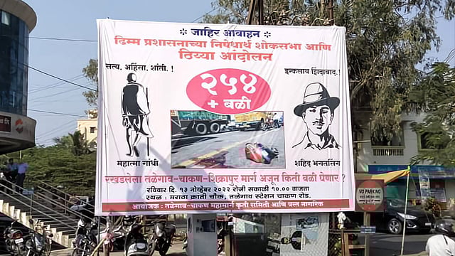 अस्तित्वातील तळेगाव-चााकण-शिक्रापूर राष्ट्रीय महामार्गाची दुरुस्ती करुन,सहापदरीकरणाचे काम युद्धपातळीवर सुरु करावे आदी मागण्यांसाठी हे ठिय्या आंदोलन करण्यात येत आहे.जास्तीत जास्त नागरिकांनी आंदोलनात सामील होण्याचे आवाहन करणारे फलक कृती समितीकडून वडगाव फाटा,स्टेशन चौक,मराठा क्रांती चौकासह ठिकठिकाणी लावण्यात आले आहेत.