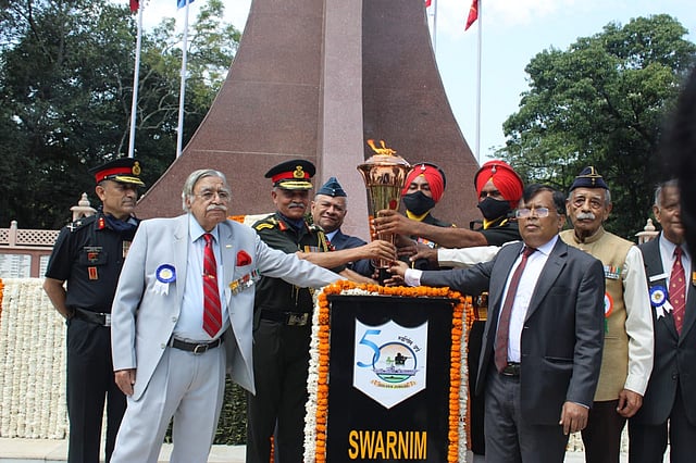 विजय मशालीचे स्वागत-सन्मानासाठी दक्षिण कमांड युद्ध स्मारकात एक भव्य समारंभ आयोजित करण्यात आला होता. या प्रसंगी लेफ्टनंट जनरल नैन यांनी निवृत्त अधिकारी आणि वीर पत्नींचा सत्कार केला आणि त्यांच्याबद्दल दृढ ऐक्य आणि कृतज्ञता व्यक्त केली. यावेळी १९७१ च्या युद्धादरम्यान जवानांच्या अतुलनीय पराक्रमामुळे मिळालेला निर्णायक विजय आणि ९३ हजार पाकिस्तानी सैनिकांचे आत्मसमर्पण ज्यामुळे युद्धाच्या इतिहासात देदीप्यमान कामगिरीची झालेली नोंद आणि त्याचबरोबर बांगलादेशच्या ‘मुक्ती जोधांच्या’ अमूल्य योगदानाबाबत नैन यांनी भर दिला.
