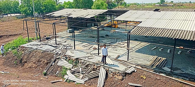 आंधळगाव, ता. १४ : इनामगाव (ता. शिरूर) परिसराला सोमवारी (ता.. १३) सायंकाळी साडेसहा वाजता अचानक आलेल्या वादळी वाऱ्यासह पावसाचा मोठा तडाखा बसला असून या वादळात इनामगाव नजिक दर्यापट येथील आबासाहेब कुरूमकर यांचे दोन पोल्ट्रीशेड, नितीन गवळी यांच्या गोठ्यांचे पत्रे उडून गेले तर ठिकठिकाणी झाडे उन्मळून पडल्याने मोठ्या प्रमाणात नुकसान झाले आहे.