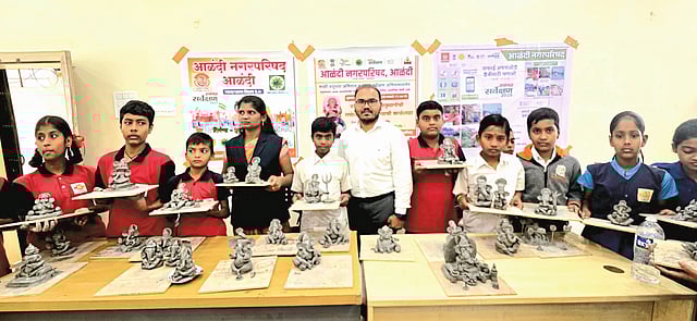 आळंदी, ता. ८ : आळंदी नगर परिषदेमध्ये ‘शाडू मातीपासून गणेशमूर्ती’ बनविण्याची कार्यशाळा आज यशस्वीरित्या पार पडली. प्लास्टर ऑफ पॅरिसऐवजी शाडू मातीपासून मूर्ती बनवण्याचे महत्त्व आणि पर्यावरण रक्षणाचा संदेश प्रभावीपणे पोहोचवण्यासाठी नगर परिषदेमध्ये ही कार्यशाळा झाली. यावेळी मूर्ती बनविण्याच्या तांत्रिक व सर्जनशील बाबी विद्यार्थ्यांना तसेच सहभागी नागरिकांना शिकवण्यात आल्या. याबाबत मुख्याधिकारी माधव खांडेकर यांनी माहिती दिली.