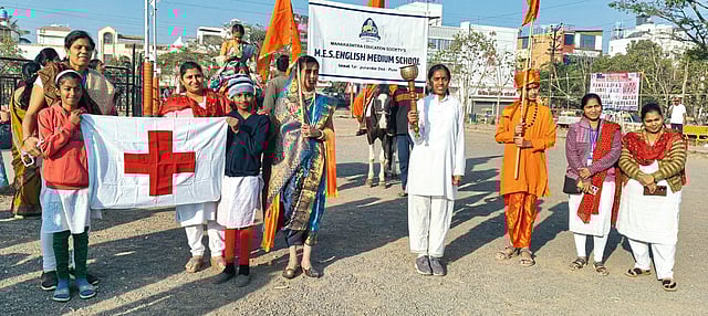 सासवड शहर, ता. १२ : स्वामी विवेकानंद यांच्या जयंतीनिमित्त राष्ट्रीय युवा चेतना दिनाचे औचित्य साधून एमईएसच्या इंग्लिश मीडियम स्कूल व योगविद्या केंद्र, सासवड यांनी संयुक्तपणे अखंड सूर्यनमस्कार यज्ञ व मिनी मॅरेथॉनच आयोजन केले होते. या कार्यक्रमास सासवडमध्ये आलेल्या जेंगो सर्कसमधील मार्शल आर्ट सादर करणारे कलाकार लॉरेन बंब संता व हसीना बानू हे प्रमुख अतिथी म्हणून लाभले होते. पाहुण्यांच्या हस्ते दीपप्रज्वलन करून कार्यक्रमाची सुरुवात झाली. दाते पुरस्कृत संगीताच्या तालावर उपस्थितांनी १०८ सूर्यनमस्कार घातले. प्रशालेतील विद्यार्थ्यांनी सांघिक प्रार्थनागीत सादर केले. तसेच, राजमाता जिजाऊ व स्वामी विवेकानंद यांच्यावर पोवाडे व भाषणे सादर केली.