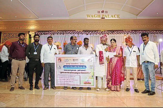 शहरातील सेवानिवृत्त ज्येष्ठ शिक्षक महादेव चव्हाण यांच्या कन्या डॉ. भाग्यश्री आणि बारामती येथील सतीश गाडेकर यांचे चिरंजीव डॉ. शुभम यांचा शुभविवाह इंदापूर येथे संपन्न झाला. विशेष म्हणजे सामाजिक बांधिलकीची जाणीव ठेवत या नवदांपत्याने आपल्या विवाह सोहळ्यातूनच सर्व नागरिकांना लोकशाहीतील अनमोल हक्क असलेल्या मतदानाचा जरूर वापर करण्याचे आवाहन करत निवडणूक प्रक्रियेत सहभागाचे महत्त्व अधोरेखित केले. हा उपक्रम इंदापूर नगरपरिषद निवडणूक निर्णय अधिकारी तथा तहसीलदार सुधाकर मागाडे आणि सहाय्यक निवडणूक निर्णय अधिकारी तसेच मुख्याधिकारी रमेश ढगे यांच्या मार्गदर्शनाखाली राबविण्यात आला. दरम्यान, निवडणूक आयोगाच्या उपक्रमांतर्गत नवविवाहित दांपत्याकडून दिलेला हा जनजागृती संदेश सर्वांसाठी प्रेरणादायी ठरला असून, इंदापूर शहरातील आगामी निवडणुकीत मतदार सहभाग वाढविण्यासाठी ही कृती सकारात्मक दिशा देणारी ठरली आहे. यावेळी नगरपरिषद निवडणुकीतील अधिकारी स्वप्नील हाके, सुभाष ओहोळ यांच्यासह प्रसाद देशमुख, सचिन होलंबे, सुरेश सोनवणे, मनोज भापकर, अल्ताफ पठाण, अरुण शिंदे यांच्यासह चव्हाण आणि गाडेकर कुटुंबीय या सर्वांच्या सहकार्यातून हा उपक्रम राबविण्यात आला.