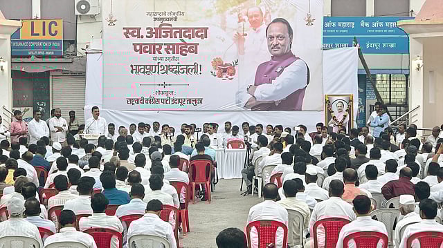 इंदापूर येथील नगरपरिषदेच्या प्रांगणात राष्ट्रवादी काँग्रेस पक्षाच्या वतीने अजित पवार यांच्या शोकसभेचे आयोजन केले होते. त्यावेळी ते बोलत होते. या प्रसंगी माजी मंत्री माजी मंत्री हर्षवर्धन पाटील, पुणे जिल्हा मध्यवर्ती बँकेचे संचालक आप्पासाहेब जगदाळे, नगराध्यक्ष भरत शहा, प्रतापराव पाटील, हनुमंत कोकाटे, अरविंद वाघ यांच्यासह आजी-माजी पदाधिकारी, आजी-माजी नगरसेवक, कार्यकर्ते उपस्थित होते.