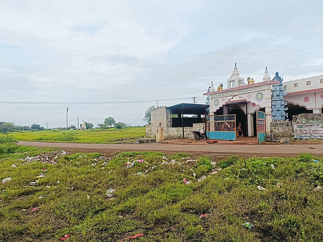 मासाळवाडी (ता. बारामती) : मंदिर परिसरात साचलेला कचरा.