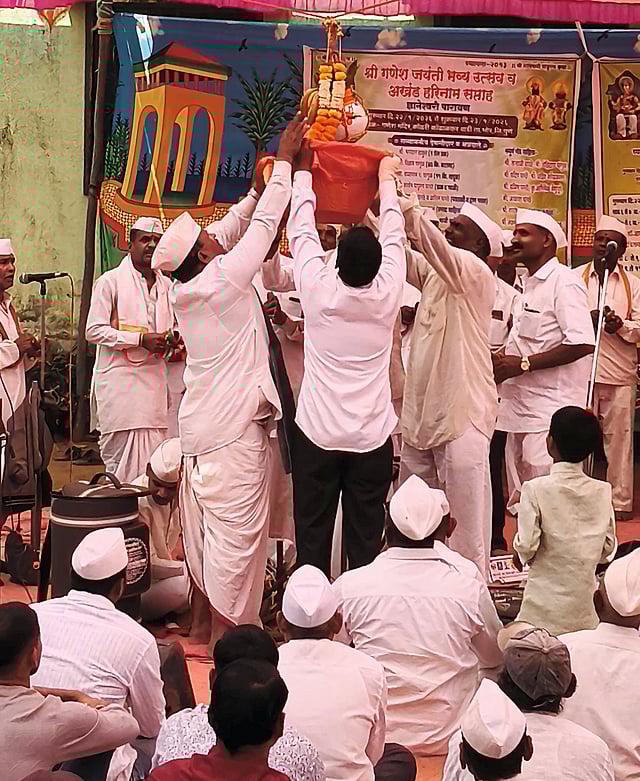 हिर्डोशी, ता. २३ : कोंढरी कोंढाळकरवाडी (ता. भोर) येथील गणेश मंदिरात गणेश जयंती उत्सव व अखंड हरिनाम सप्ताहानिमित्त विविध धार्मिक कार्यक्रमांचे आयोजन केले होते. या दोनदिवसीय सप्ताहाची सांगता शुक्रवारी (ता. २३) काल्याच्या कीर्तनाने करण्यात आली.