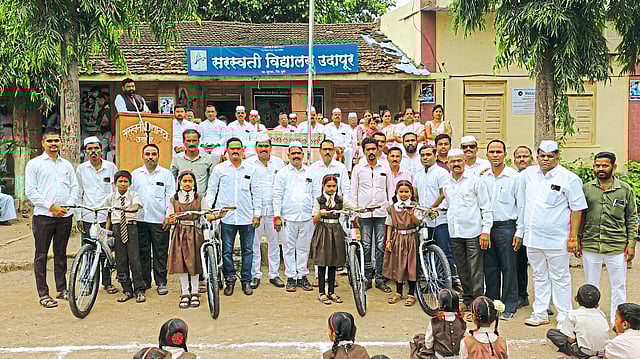 ओतूर, ता. १६ ः उदापूर (ता. जुन्नर) येथील मैत्री ग्रुपकडून ‘एक हात मदतीचा’ या उपक्रमांतर्गत सरस्वती विद्यालय व जिल्हा प्राथमिक शाळेतील चार विद्यार्थ्यांना सायकल भेट देण्यात आल्या. या सायकली विद्यालयाच्या मुख्याध्यापकांकडे सुपुर्द करण्यात आल्या. यावेळी मैत्री ग्रुपचे सर्व सदस्य, विद्या विकास मंडळाचे अध्यक्ष प्रभाकर शिंदे, ग्रामविकास मंडळाचे अध्यक्ष संजीव शिंदे, तंटामुक्त समितीचे अध्यक्ष बाजीराव कुलवडे, श्रीराम देवस्थान ट्रस्टचे सचिव बाळासाहेब होनराव, शालेय व्यवस्थापन समितीचे उपाध्यक्ष अर्जुन अमूप, माजी सरपंच प्रमिला शिंदे, सरस्वती विद्यालयाचे मुख्याध्यापक प्रतिक अकोलकर, जिल्हा परिषद प्राथमिक शाळेच्या मुख्याध्यापिका माणिक फापाळे व सर्व शिक्षक, विद्यार्थी, विविध संस्थेचे पदाधिकारी व ग्रामस्थ उपस्थित होते.