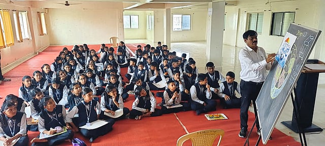 ‘सकाळ माध्यम समूहा’च्या वतीने राबविण्यात येणाऱ्या ‘सकाळ एनआयई’ उपक्रमांतर्गत कुरुळी (ता. खेड) येथील आनंद इंग्लिश मीडियम स्कूल येथे शासकीय रेखाकला व चित्रकला अभ्यासक्रमावर आधारित एलिमेंटरी व इंटरमिजिएट परीक्षा मार्गदर्शन कार्यशाळेचे आयोजन केले होते. यावेळी संस्थेचे संस्थापक कार्याध्यक्ष डॉ. अनिल काळे, प्राचार्या सरला रेवगडे, कलाशिक्षक  आदित्य वाजे, जगदीश मुळीक उपस्थित होते.