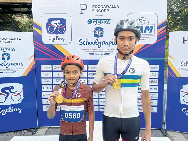 पुणे, ता.१३ ः पूनावाला फिनकॉर्प प्रस्तुत सकाळ स्कूलिंपिक्स सायकलिंग स्पर्धेमध्ये एरंडवणे येथील अभिनव विद्यालय इंग्लिश मीडियम स्कूलच्या गौरव नवले, दिग्विजय नवले या भावंडांनी सुवर्णपदकांची कमाई केली. याशिवाय, मनस्वी दारा, शर्व वाळके, सानिया शहा, श्रेया महाजन यांनीही जेतेपदावर शिक्कामोर्तब केले.