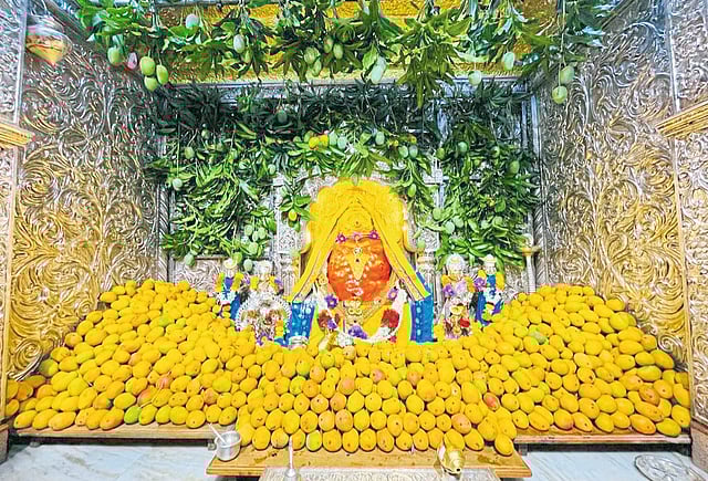 अक्षय्य तृतीयेचे औचित्य साधून महागणपती मंदिरात विविध धार्मिक विधींचे आयोजन केले होते. महागणपतीचा गाभारा आंब्यांच्या पानांची तोरणे व रंगीबेरंगी फुलांनी सजविला होता. दुपारी महापूजेनंतर पाच हजार एक आंब्यांचा महानैवेद्य दाखविण्यात आला. पुण्यातील गणेश भक्त किरण मेनकर व बाळकृष्ण जांभळे यांनी हे आंबे महागणपती चरणी अर्पण केले.