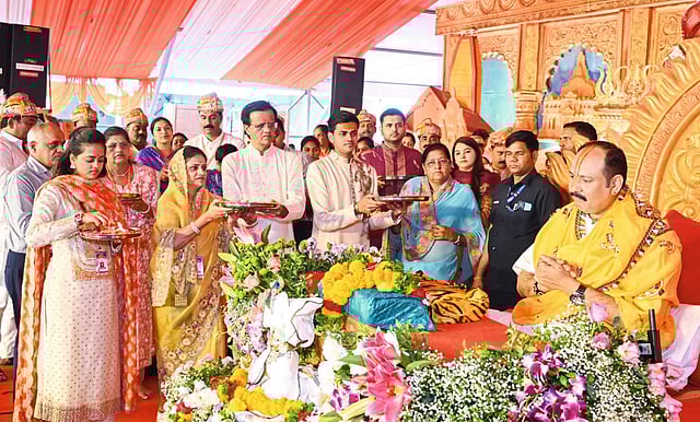 श्री शिव महापुराण कथासोहळ्याला मंगळवारी (ता. २४) सुरुवात झाली. श्री शिवाय नमस्तुभ्यं, हर हर महादेव, ‘रामलिंग महाराज की जय’ चा गजर आणि भजनांच्या सूरावटीत पंडित मिश्रा यांचे व्यासपीठावर आगमण झाले. त्यावेळी अवघा जनसागर शिवनामात तल्लीन झाला. या सोहळ्याचे निमंत्रक, श्री रामलिंग देवस्थान ट्रस्टचे अध्यक्ष प्रकाश धारिवाल व दीना धारिवाल यांच्या हस्ते शिवमहापुराण व इतर धर्मग्रंथांचे पूजन झाले. आदित्य धारिवाल, साक्षी मेहता, उज्ज्वला लुंकड, सुरेखा चोपडा व कल्पना लुणावत यांच्या हस्ते आरती झाली. माजी आमदार पोपटराव गावडे व अशोक पवार, नगराध्यक्षा ऐश्वर्या पाचर्णे आदी यावेळी उपस्थित होते.