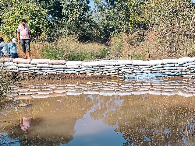 उत्रौली, ता. १६ : आंबाडे (ता. भोर) येथील जानुबाई मंदिराजवळील गुरुखीच्या ओढ्यात शनिवारी (ता. १३) सकाळी १० ते दुपारी ३ वाजेपर्यंत श्रमदानातून वनराई कच्च्या बंधारा तयार केला. यासाठी पुणे येथील पर्वती, इंदिरा नगर सेवा केंद्रातील २० साधकांनी जगद्गुरू रामानंदाचार्य नरेंद्राचार्य महाराज यांच्या संकल्पनेतून ग्रामस्थांच्या मदतीने पुढाकार केला.