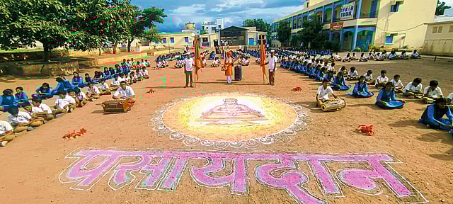 महर्षी वाल्मीकी विद्यालयात कार्यक्रम घेण्यात आला. यावेळी प्रांगणामध्ये संतश्रेष्ठ ज्ञानेश्वर महाराजांची मोठी प्रतिमा तयार करून आकर्षक रांगोळी आणि फुलांच्या सहाय्याने सजावट केली होती. त्याभोवती टाळ-मृदंगासह, वीणा, पेटी आदींची मांडणी करण्यात आली. यावेळी विद्यालयाचे प्राचार्य सतीश निगडे यांच्या हस्ते प्रतिमा पूजन करण्यात आले. सरपंच अतुल गायकवाड, संदीप जाधव यांनी कार्यक्रमाचे संयोजन केले. यावेळी पुणे जिल्हा बँकेचे अध्यक्ष प्रा. दिगंबर दुर्गाडे म्हणाले, ‘‘माउलींच्या सप्तशतकोत्तर सुवर्णमहोत्सवी जयंतीनिमित्त विद्यार्थ्यांमध्ये आध्यात्मिक आणि सांस्कृतिक मूल्यांची जोपासना करणे, त्यांना ज्ञानेश्वरी आणि पसायदानातून चांगली मूल्यांची जाणीव जागवण्यासाठी घेतलेला हा उपक्रम उल्लेखनीय ठरला आहे.’’ सुकलवाडी येथील अशोक महाराज पवार यांनी पसायदान घेतले. यामध्ये इयत्ता पाचवी ते बारावी पर्यंतच्या विद्यार्थ्यांनी उस्फूर्त सहभाग नोंदविला. प्राचार्य सतीश निगडे यांनी प्रास्ताविक केले.