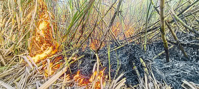 वाल्हे, ता. ३० : वाल्हे (ता. पुरंदर) येथील वाल्हे–आडाचीवाडी रस्त्यालगत असलेल्या ऊसशेतीला अज्ञात व्यक्तीने आग लावली. ही घटना मंगळवारी (ता. ३०) दुपारी चार वाजण्याच्या सुमारास घडली. या आगीत बाळासाहेब भुजबळ यांचा पाच एकर व सचिन भुजबळ यांचा दीड एकर असा एकूण साडेसहा एकर ऊस जळून खाक झाला आहे. यामुळे लाखो रुपयांचे नुकसान झाले आहे. मात्र शेजारील दीड एकर ऊस वाचविण्यात शेतकऱ्यांना यश आले.