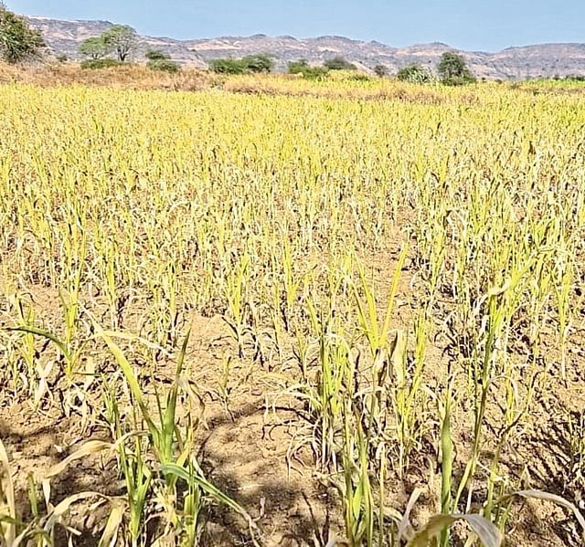 भावेनगर ः विहिरींनी तळ गाठल्यामुळे पाण्याअभावी ज्वारीच्या पिकाचे बाटूक झाले आहे. (राहुल लेंभे ः सकाळ छायाचित्रसेवा)