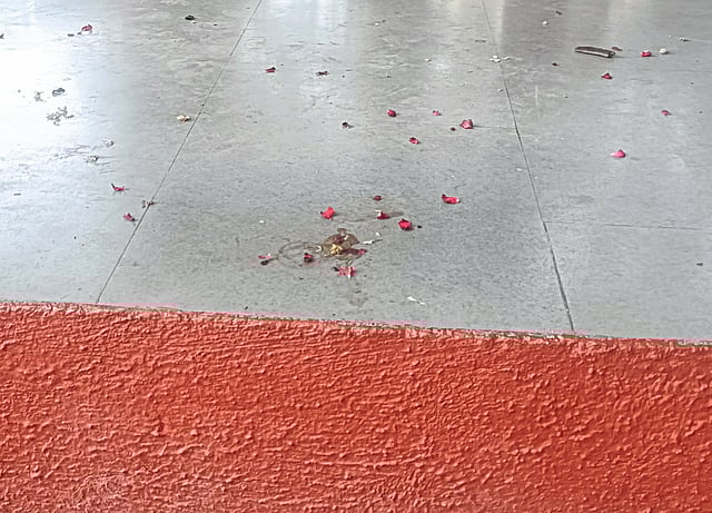 - सजावटीच्या वस्तू, कुंड्या, विद्युत पोल, थर्माकोल अस्ताव्यस्त पडलेले