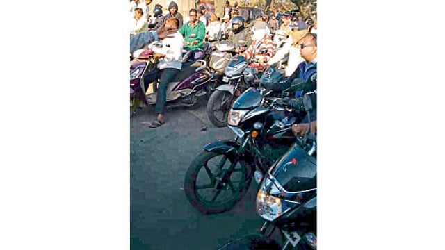 मंगळवारी सकाळी नेहमीप्रमाणे बेशिस्त चालकांमुळे कोंडीला सुरवात झाली. नेमके याच वेळी वाहतूक नियमनासाठी पोलिस अथवा वॉर्डन जागेवर नसल्यामुळे जवळपास दोन तास वाहतूक ठप्प झाली. विद्यार्थी, पालक, कामगार, चाकरमान्यांची वाहने कोंडीत अडकल्याने सर्वांना कार्यस्थळी पोचण्यास उशीर झाला. कोंडीतून सुटका करण्यासाठी उलट्या दिशेने घुसलेले बेशिस्त चालक आणि सरळ चाललेले चालक यांच्यात बाचाबाची झाली. मात्र, चौकातील मिनीडोअर चालकांनी सामाजिक बांधिलकी जपत वाहतूक नियमनाचे काम केल्याने कोंडी हळूहळू सुटली.