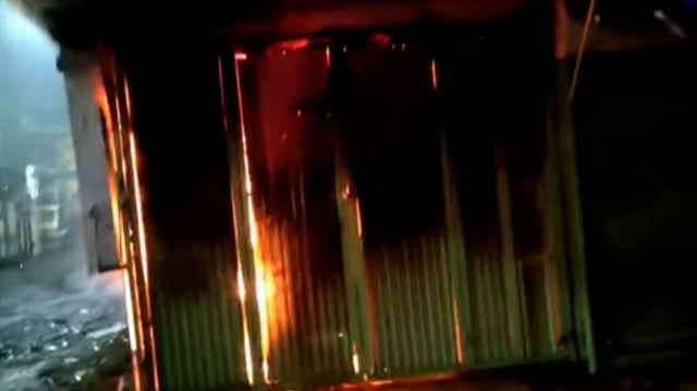जुन्नर : (दत्ता म्हसकर) जुन्नर शहरातील भरवस्तीत असणाऱ्या खोत इलेक्ट्रॉनीक्स व ऋषी शूज हाऊस या दोन दुकानांचे सोमवारी ता. १३ रोजी रात्री लागलेल्या आगीत मोठे नुकसान झाले आहे. दोन्ही दुकाने बंद करून मालक घरी गेल्यानंतर आगीच्या घटना घडल्या.