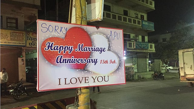 पुणे : विरोधात दाखल केलेले गुन्हे मागे घ्यावे यासाठी डॉक्टर पतीने फ्लेक्सबाजीव्दारे पत्नीची माफी मागितली आहे. हडपसर येथील चौकांमध्ये फ्लेक्स लावत पतीने पत्नीला लग्नाच्या वाढदिवसाच्या शुभेच्छा देऊन त्यात 'सॉरी'चा उल्लेख केला आहे.