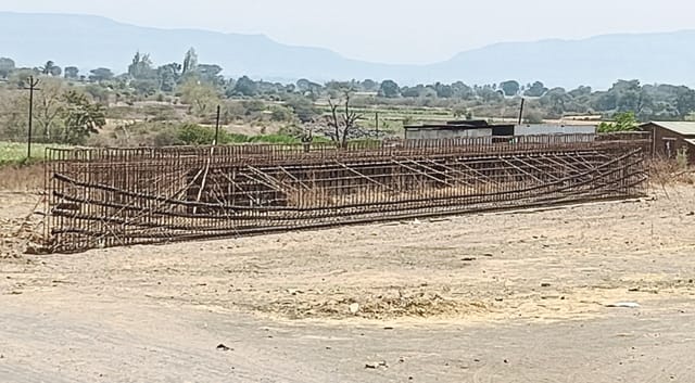 वाघोली ः वसना नदीवरील पुलाच्या बिम्सचे संथ गतीने सुरू असलेले काम. (राहुल लेंभे : सकाळ छायाचित्रसेवा)