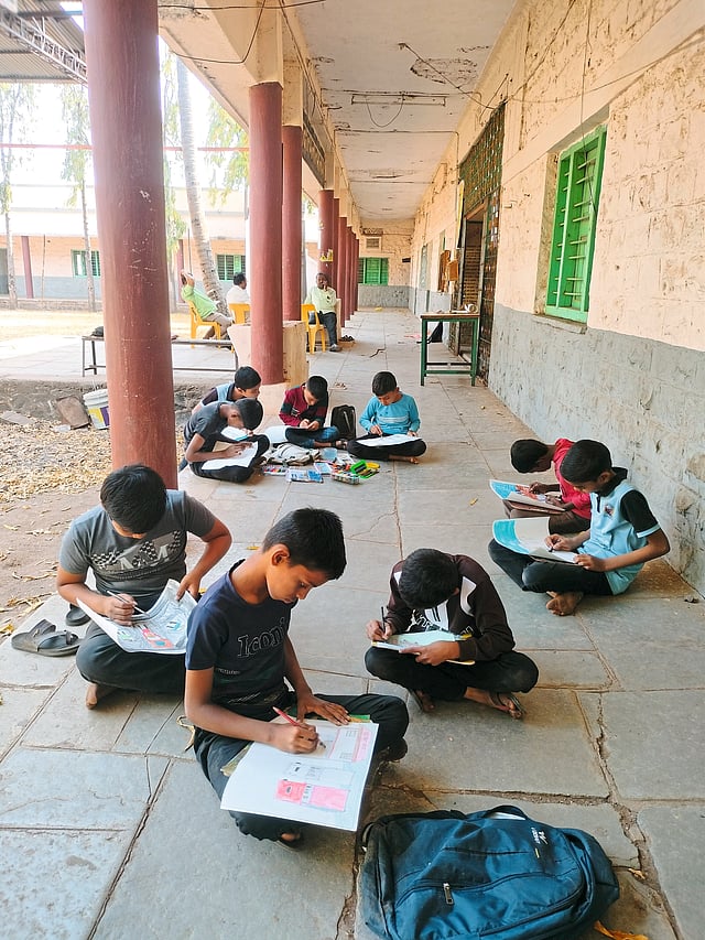 वैराग (ता. बार्शी) : येथील विद्यामंदिर हायस्कूलमध्ये चित्रकला स्पर्धेत सहभागी विद्यार्थी.