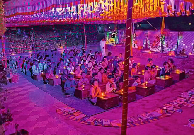 नेवेकरवाडी : येथे विद्याव्रत शिबिरात सहभागी विद्यार्थी. (प्रशांत गुजर : सकाळ छायाचित्रसेवा)