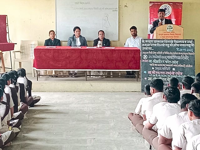 अकोला-वासूद (ता. सांगोला) : येथील सरदार श्यामराव लिगाडे विद्यालयात आयोजित कायदेविषयक शिबिरात मार्गदर्शन करताना.......... यावेळी उपस्थित इतर.