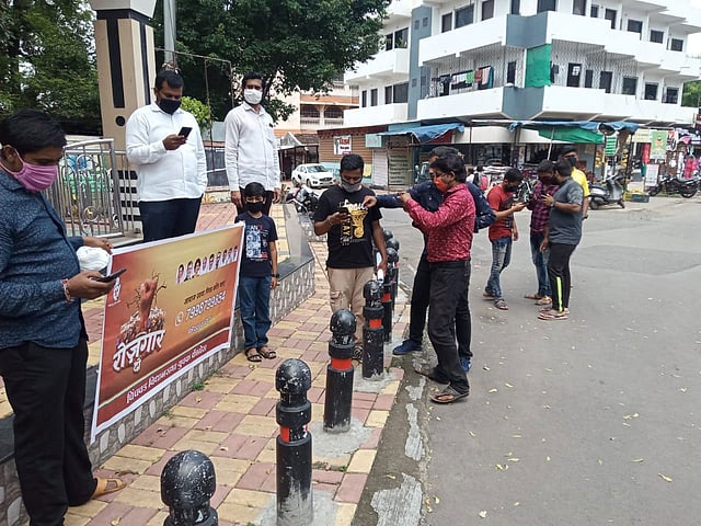 जुनी सांगवी : चिंचवड विधानसभा युवक कॉंग्रेसच्या वतीने जुनी सांगवीत 'रोजगार दो',या अभियानाची सुरूवात करण्यात आली. हे अभियान नागरिकांचे लक्ष वेधत आहे. येथील पुण्यश्लोक अहिल्यादेवी होळकर चौक पुतळ्यासमोर कार्यकर्त्यांच्या वतीने रोजगार दो चा फलक हाती घेवून सध्या संकटात असलेल्या बेरोजगार सर्वसामान्यांना न्याय द्या.अशी मागणी करण्यात आली.