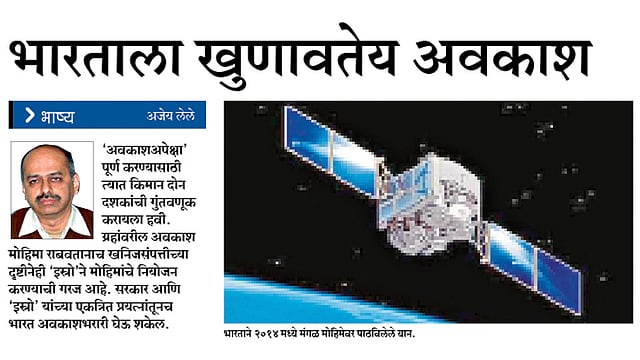 ‘अवकाशअपेक्षा’ पूर्ण करण्यासाठी त्यात किमान दोन दशकांची गुंतवणूक करायला हवी. ग्रहांवरील अवकाश मोहिमा राबवतानाच खनिजसंपत्तीच्या दृष्टीनेही ‘इस्रो’ने मोहिमांचे नियोजन करण्याची गरज आहे. सरकार आणि ‘इस्रो’ यांच्या एकत्रित प्रयत्नांतूनच भारत अवकाशभरारी घेऊ शकेल.