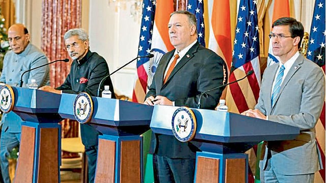 भारत आणि अमेरिका यांच्या परराष्ट्र आणि संरक्षण मंत्रीस्तरावरील ‘२+२’ चर्चा नुकतीच नवी दिल्लीत झाली. अमेरिकेत अध्यक्षपदाच्या निवडणुकीला अवघा एक आठवडा उरलेला असताना ट्रम्प प्रशासनातील दोन महत्त्वाचे नेते भारतात आल्याने सर्वांच्याच भुवया उंचावल्या. अर्थात, अमेरिकेतील दोन्ही पक्षांना भारतासोबतची मैत्री महत्त्वाची आहे हे दर्शवण्याची संधी भारताने साधली. यापूर्वीच्या ‘२+२’ बैठकीदेखील ऑक्टोबर महिन्यातच झालेल्या आहेत. शिवाय, ऑक्टोबर २००८मध्ये तत्कालीन अध्यक्ष जॉर्ज डब्ल्यू बुश (ज्युनिअर) यांचा दुसरा कार्यकाळ संपत असताना भारत आणि अमेरिका यांच्यातील आण्विक सहकार्य करारावर स्वाक्षरी झाली होती. त्यामुळे भेटीची वेळ महत्त्वाची असली तरी त्यातून वेगळा अर्थ काढणे योग्य ठरणार नाही.