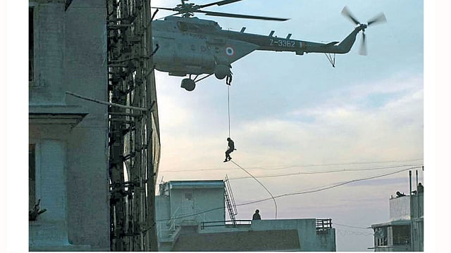 छबाड हाउसच्या टेरेसवर एका मोठ्या एमआय-१७ हेलिकॉप्टरनं घिरट्या घातल्या आणि ते परत गेलं. इतर इमारतींमधले एनएसजीचे कमांडोज ज्या खोलीत दहशतवादी होते त्या दिशेनं वेगानं येताना दिसले. नंतर हेलिकॉप्टर पुन्हा आलं आणि ते नरिमन हाउसवर थांबलं. त्यातून २२ एनएसजी कमांडोज टेरेसवर उतरले. इतर इमारतींमधल्या जवानांनी गोळीबार सुरू केला आणि त्याच वेळी टेरेसवरून जवान खाली उतरले. एक तास जोरजोरात गोळीबार सुरू होता. त्यानंतर एक एनएसजी कमांडो दुसऱ्या जखमी कमांडोला बाहेर आणताना दिसला. त्यांचं नाव मेजर उन्नीकृष्णन होतं-जे नंतर शहीद झाले. सगळे दहशतवादी मारले जाईपर्यंत गोळीबार सुरू होता. इमारतीमधले सगळे लोकही मृत्यमुखी पडले-फक्त दोन वर्षांचा मोशे जिवंत राहिला होता.