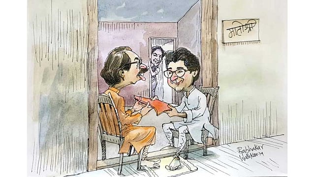 दादू : (अतिशय आनंदात) राजकारण गेलं चुलीत!!...मला तुला कडकडून भेटू दे! एकप्रकारे तुझं हे नवनिर्माणच नाही का? ये, असा आत ये!!