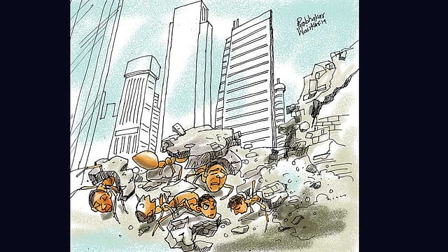 धडधडा कोसळलेल्या भिंतीखाली