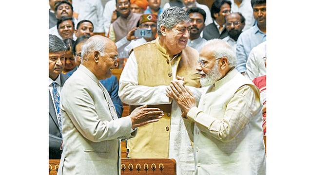 संपूर्ण देश या ऐतिहासिक क्षणाचा साक्षीदार ठरला आहे. आपली लोकशाही मूल्ये आणि तत्त्वे यांचे जतन आणि संवर्धन करण्यात यामुळे मोलाचे योगदान मिळणार आहे. नरेंद्र मोदी सरकारने गेल्या नऊ वर्षात आपल्या देशासमोरील अनेक आव्हानांचे रूपांतर सुद्धा संधींमध्ये केले आहे. कोरोना साथ, आर्थिक मंदी आणि रशिया-युक्रेन युद्ध अशा संकटमालिकेतही, भारताच्या मजबूत आर्थिक वृद्धीची यशोगाथा कुठल्याही अडथळ्याविना अखंड सुरुच राहिली.