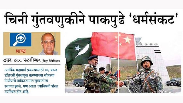 लागेल. जुलै 2007 मध्ये इस्लामाबादमध्ये लाल मशिदीतील मूलतत्त्ववाद्यांनी तीन चिनी महिलांचे त्या वेश्याव्यवसाय करतात या कारणावरून अपहरण केले होते व त्यांच्या सुटकेसाठी पाकिस्तानी सैन्याला मशिदीवर कारवाई करावी लागली होती, हे या संदर्भात लक्षात घ्यावे लागेल. अमेरिकेकडून मदत घेताना त्यांच्या नागरिकांच्या वागणुकीचा जो अनुभव आला, त्यामुळे पाकिस्तानात अमेरिकेबद्दल चीड आहे. चीनच्या बाबतीत असे होणार नाही याची काहीच शाश्वती नाही.
